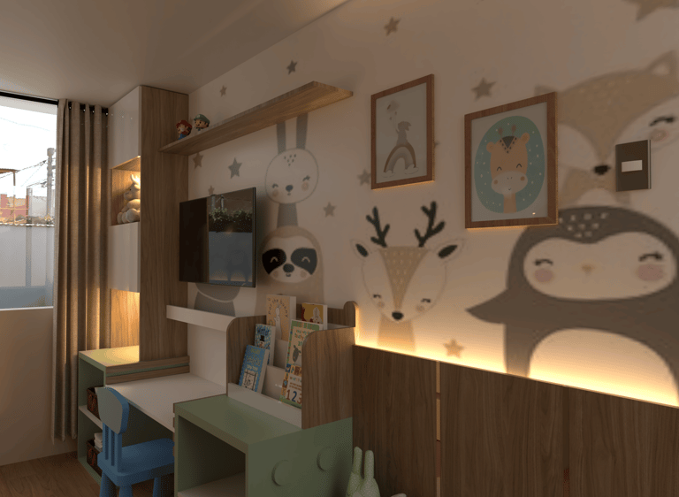 El proyecto se trataba de realizar la remodelación de un dormitorio infantil para una niña de 2 años de edad en la Ciudad de Trujillo, donde el punto de partida para el diseño fue que el usuario realice sus actividades dentro del espacio.
